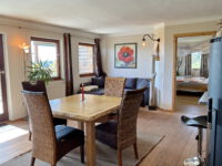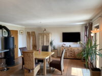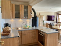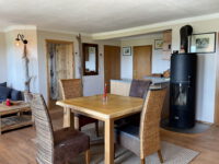 Der neu renovierte Wohnbereich ist gemütlich eingerichtet. Hier befindet sich eine bequeme ausziehbare Couch mit Kaltschaummatratze, ein Esstisch mit vier Stühlen, ein Flat LCD Fernseher , eine Küchenzeile sowie ein nutzbarer Kaminofen. Die Wohnung verfügt über 2 separate Schlafzimmer.