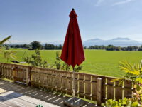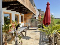 Die Ferienwohnung hat einen Terrasse mit Zugang vom Wohnzimmer.
